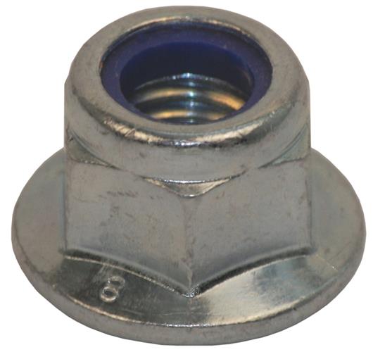 Flangemøtrik med nylonlås DIN 6926, kvalitet 8, elgalvaniseret.