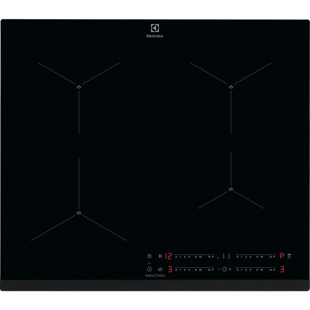 Electrolux EIS62443. Produktfarve: Sort, Placering af apparat: Indbygget, Ovnbredde størrelse: 60 cm. Kontroltype: Berøring, Kontrolposition: Øverst til højre, Timer type: Digital. Tilsluttet belastning (elektrisk): 7200 W, Vekselstrømsindgangsspænding: 220-240V/400, Vekselstrømsindgangsfrekvens: 50-60 Hz. Bredde: 590 mm, Dybde: 520 mm, Højde: 44 mm