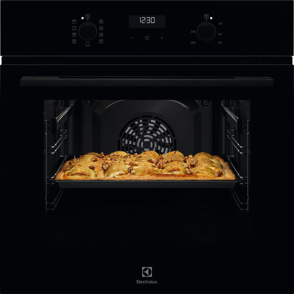 Electrolux Serie 600 EOD5H70BZ. Ovn - størrelse: Medium, Ovntype: Elektrisk ovn, Samlet indvendig ovn kapacitet: 65 L. Placering af apparat: Indbygget, Produktfarve: Sort, Kontroltype: Dreje. Urtype: Elektronisk, Timer type: Digital, Timer tilstande: Madlavningstid, Afsluttende tilberedningstid. Energieffektivitetsklasse: A, Energiforbrug (konventionel): 0,89 kWh, Energiforbrug (tvungen konvektion): 0,78 kWh. Antal lamper: 1 Lampe( r), Lampe type: Halogen, Belysning placering: Bagside