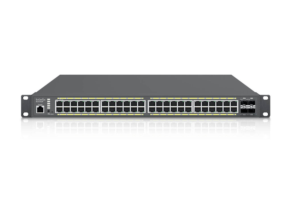 EnGenius ECS1552P. Switch-type: Administreret, Switch lag: L2+. Basis omskiftning RJ-45 Ethernet porttype: Gigabit Ethernet (10/100/1000), Basis omskiftning RJ-45 Ethernet porte, antal: 48. Fuld duplex. MAC adresselabel: 32000 entries, Switch kapacitet: 176 Gbit/sek.. Netværksstandarder: IEEE 802.3, IEEE 802.3ab, IEEE 802.3u, IEEE 802.3x. Strøm over Ethernet (PoE). Stativ-montering