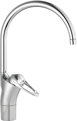 1-grebsarmatur med C-tud. Armaturet har en Keramisk kartusche med Anti-skoldnining, Kold Start og Eco-Save vandsparefunktion. Rub Clean perlator der gør det let at fjerne kalk. Max 8 liter/min. Uden bundventil
