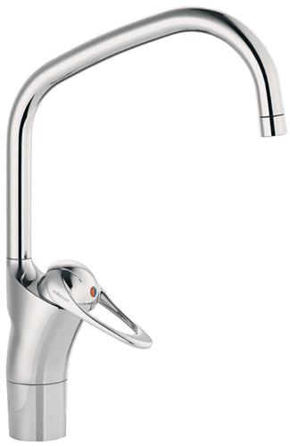 1-grebsarmatur med høj svingtud, Koldstart, Soft Closing system, indbygget temperatur- og flowbegrænser, samt keramisk tætning.