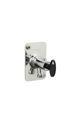 Gårdpostehane med løs nøgle, selvtømmende. Til vægtykkelse max. 600 mm. Med kontraventil. Frostsikker. Råforkromet.