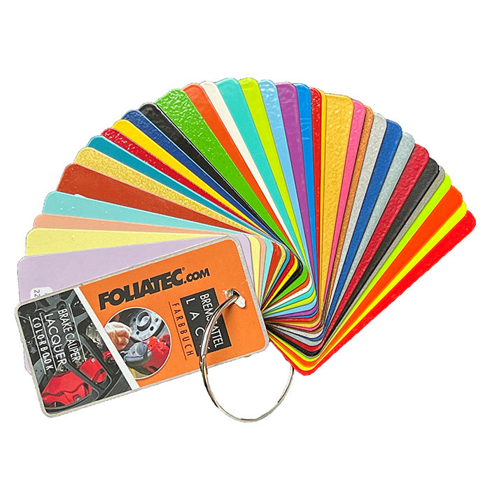Opdag Foliatec bremsekalibermaling farvevifte i metal, en essentiel hjælp til at vælge den perfekte farve til dine bremsekalibre. Denne farvevifte præsenterer et udvalg af høj kvalitet, hvor hver farve er omhyggeligt malet på metalplader.