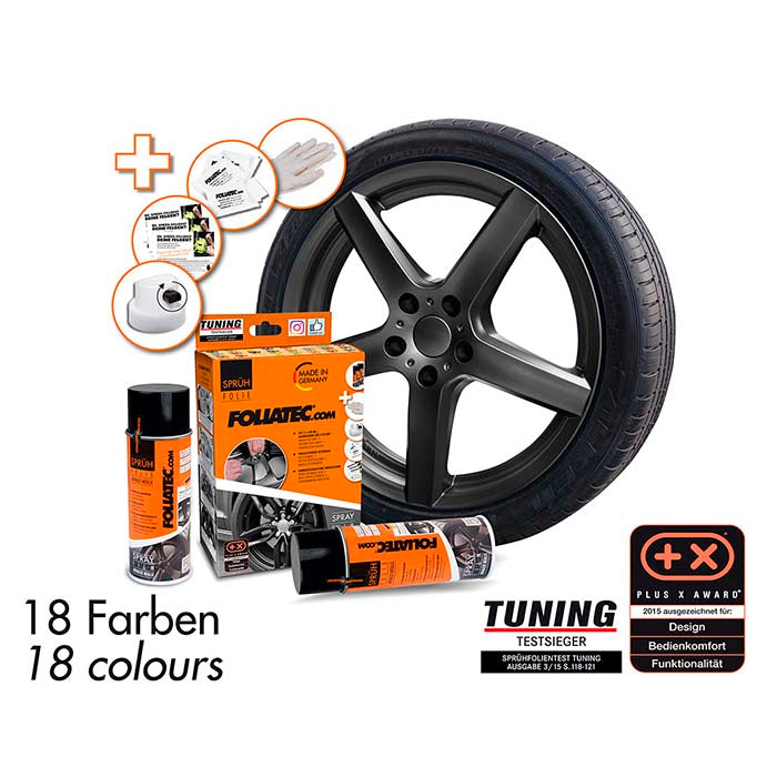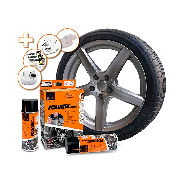 Forvandl dit udstyr med Foliatec Sprayfolie. Dette sæt indeholder to 400 ml dåser, der gør det muligt at ændre udseendet på fælge og tilbehør hurtigt og nemt.