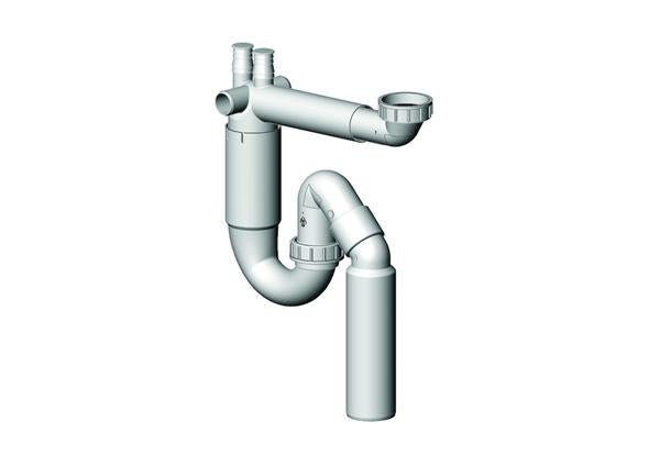 Universal S-vandlås for 1 kumme vaske. 50 mm tilslutning væg/gulv. Lys grå plast.