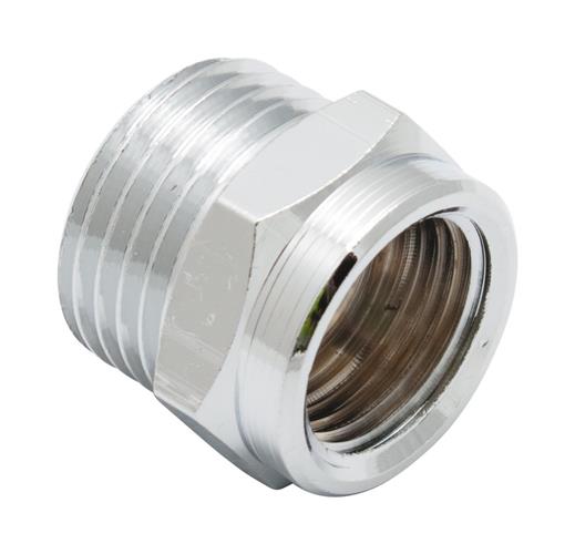 Overgangsnippel med indv. stop og 3/8" indv./ 1/2" udv. RG, forkromet.
