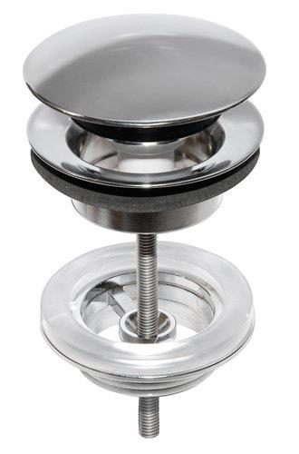 Push-down bundventil til håndvaske med overløb. Mål på håndvask: min 30 mm, max 45 mm.