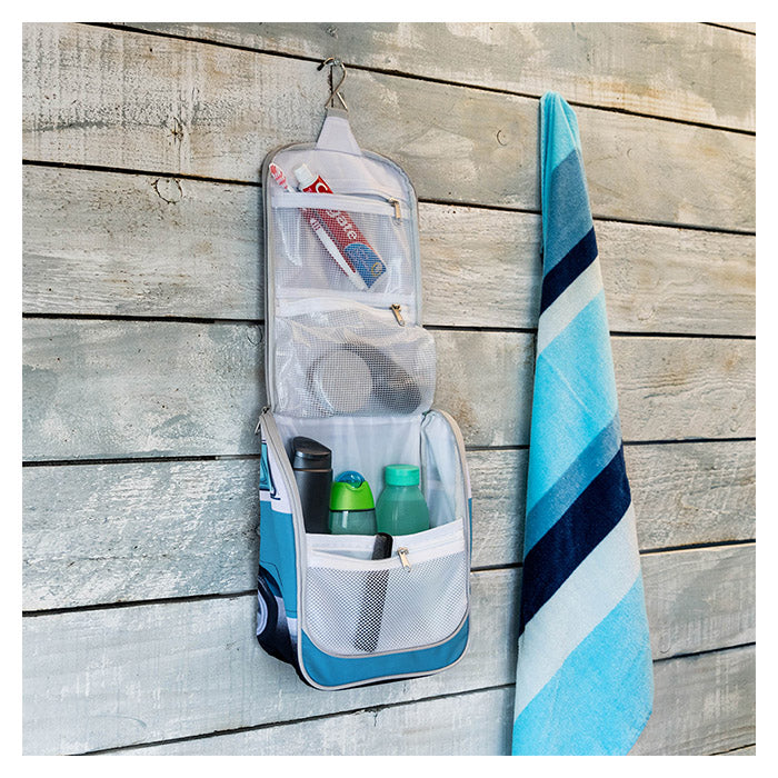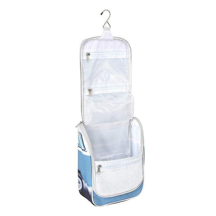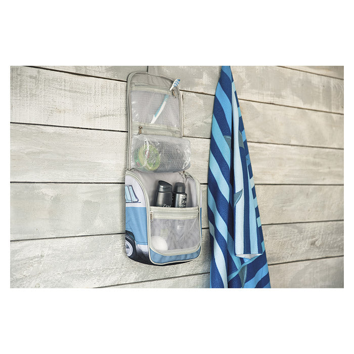 Oplev den praktiske hængende toilettaske med det ikoniske VW T1 Bus motiv. Denne taske er designet til at maksimere opbevaringspladsen og kan nemt fastgøres til væggen med en smart krog. Indvendigt finder du adskillige lommer og rum, der gør det ideelt til rejser og campingture.