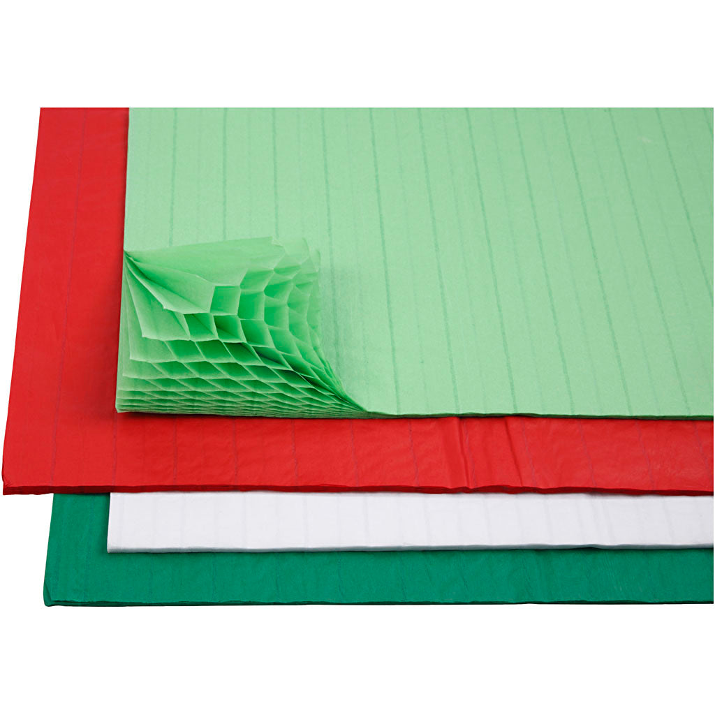Sortiment af tyndt silkepapir, der er limet sammen i 30 lag og kan udfoldes i et fint tredimensionelt mønster