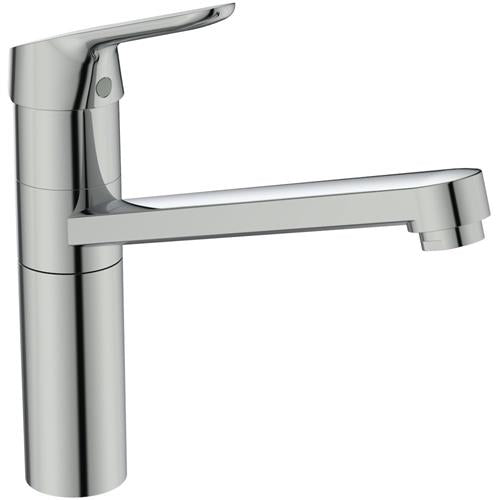 Ideal Standard Ceraflex Køkkenarmatur, krom, 1-grebs, høj tud, keramisk kartouche, BlueStart - 100% koldt vand v/midterstillet greb, vandsparer, 24 mm luftblander, 222 mm tudfremspring