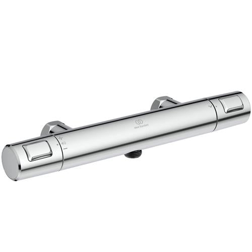 Ideal Standard Ceratherm T25 Brusetermostat, krom, keramisk ventiloverdel, skoldningsspærre, vandsparer, uden forskruninger og rosetter, afg. nedad, G1/2" til bruseslange