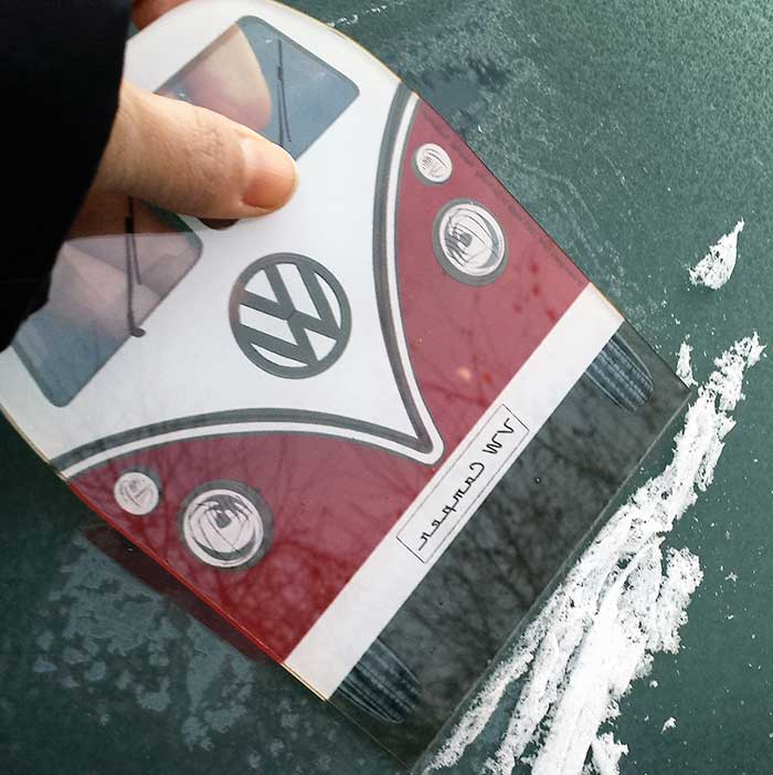 Giv din bil et retro touch med denne unikke isskraber, der prydes af det ikoniske VW T1 bus design. Den er ikke kun funktionel, men også en sjov accessory til vintermånederne.