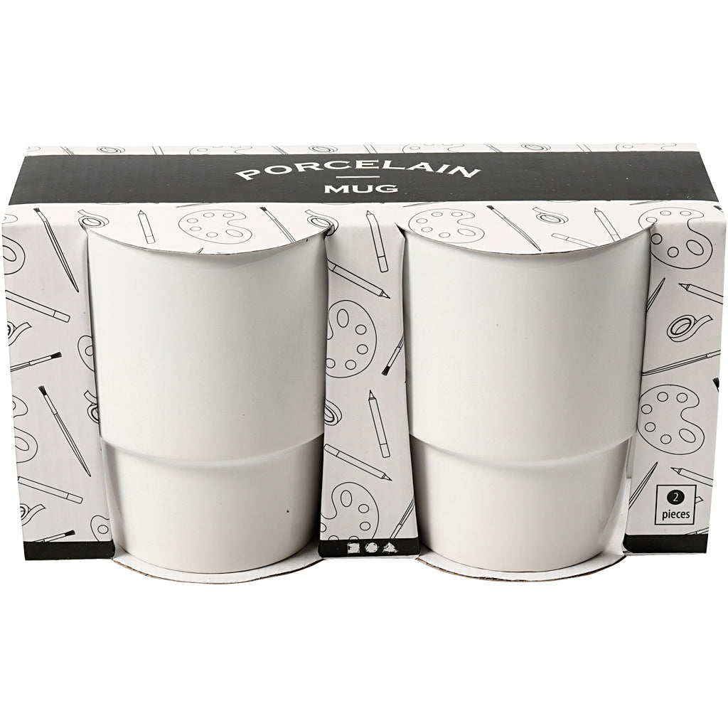 Krus, H: 11 cm, diam. 8,5 cm, hvid, 2 stk./ 1 pk.