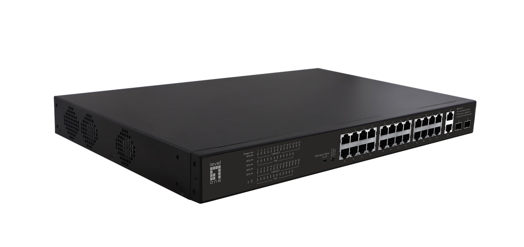 LevelOne FGP-2831. Switch-type: Ikke administreret. Basis omskiftning RJ-45 Ethernet porttype: Fast Ethernet (10/100), Basis omskiftning RJ-45 Ethernet porte, antal: 28. Netværksstandarder: IEEE 802.1af, IEEE 802.3at. Strøm over Ethernet (PoE). Stativ-montering, Formfaktor: 1U