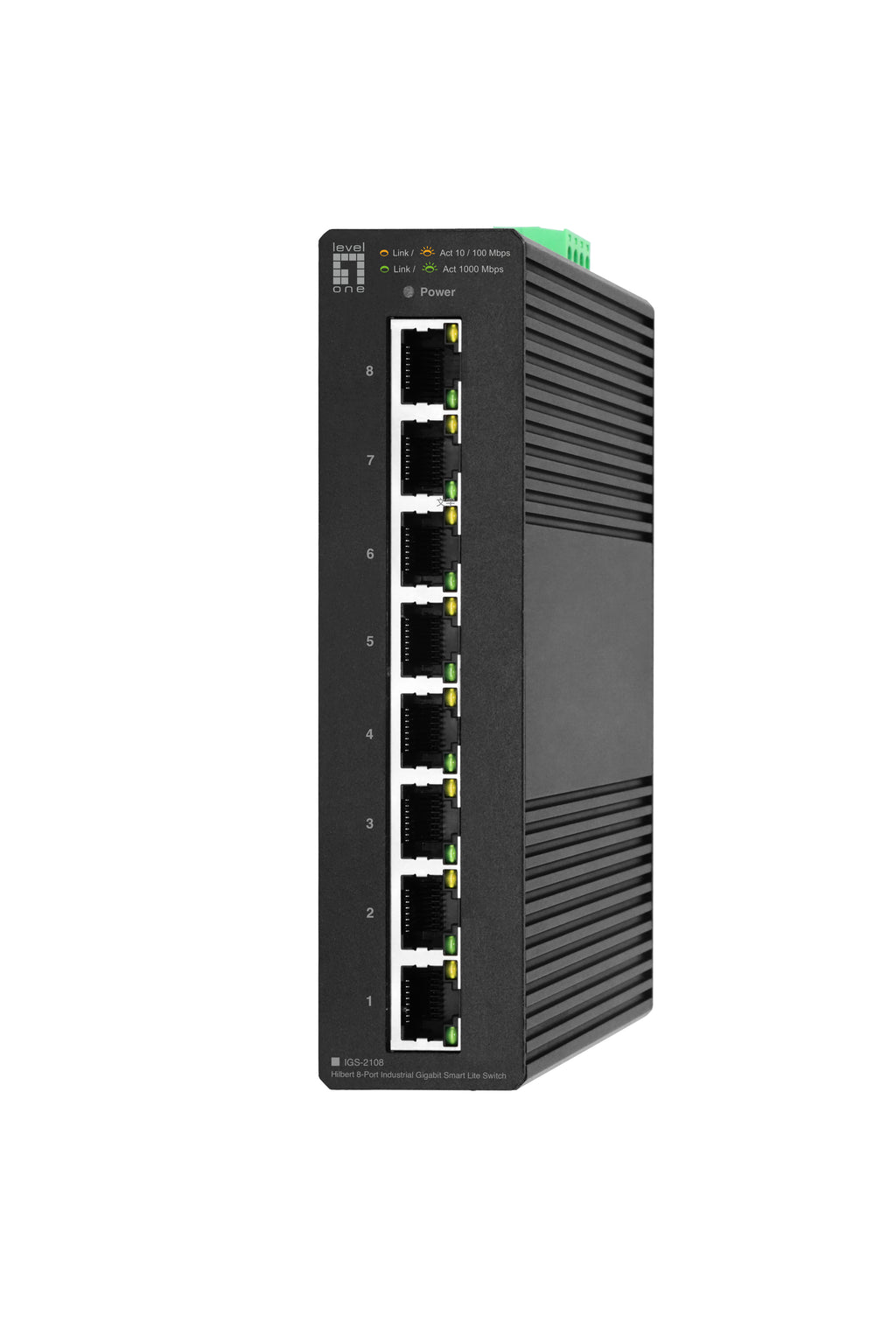 LevelOne IGS-2108. Switch-type: Administreret, Switch lag: L2. Basis omskiftning RJ-45 Ethernet porttype: Gigabit Ethernet (10/100/1000), Basis omskiftning RJ-45 Ethernet porte, antal: 8. Fuld duplex. MAC adresselabel: 4000 entries, Switch kapacitet: 16 Gbit/sek.. Netværksstandarder: IEEE 802.1D, IEEE 802.1Q, IEEE 802.1p, IEEE 802.1w, IEEE 802.3, IEEE 802.3ab, IEEE 802.3az, IEEE.... DC indgangsspænding: 12 - 57 V