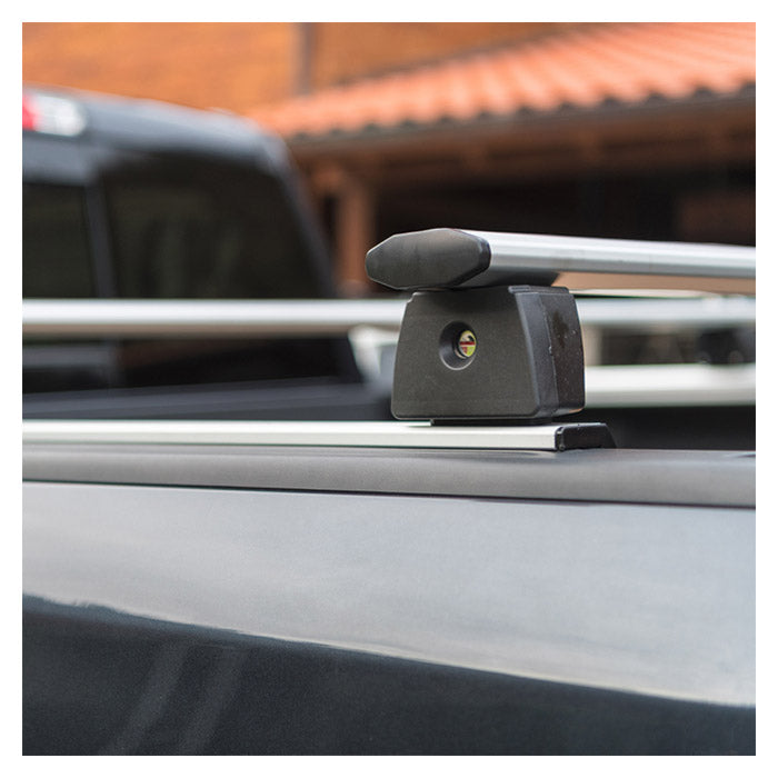 Opgrader din ladbil med Menabo tagbøjlesæt i elegant sølv. Disse universelle tværstænger er designet til at passe perfekt henover ladet og tilbyder en robust aluminiumsprofil med T-System slot til tilbehør.