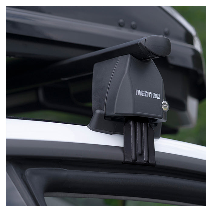 Tagbøjlerne har et T-System slot til nem fastgørelse af tilbehør og er udstyret med et anti-tyveri låsesystem med kodet nøglelås. Sættet er klar til montering og inkluderer værktøj for en hurtig installation.