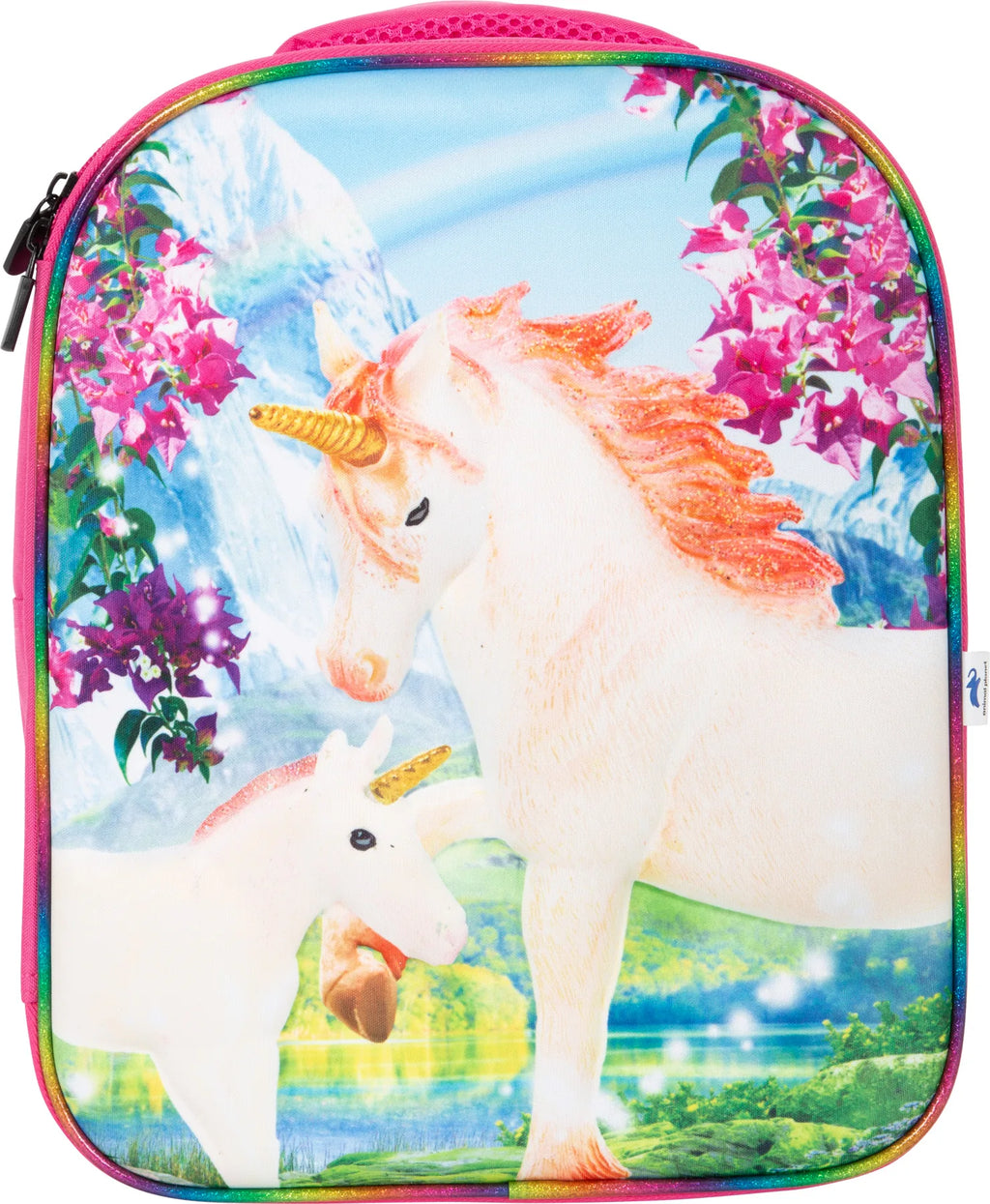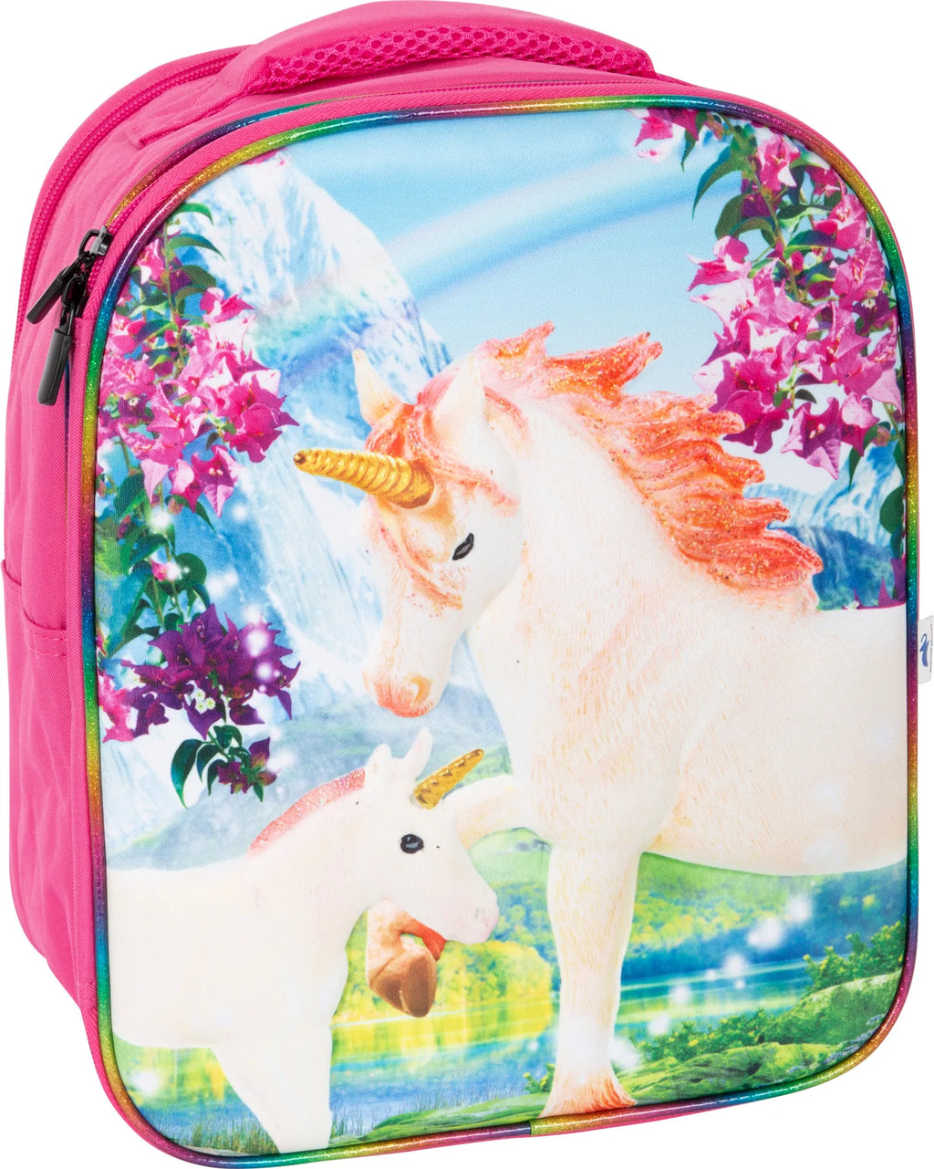 Smart playScape rygsæk med flot motiv af enhjørninge på forsiden. Rygsækken har indbygget legemåtte med et spændende motiv, billedbog og dyr gemt bag rygsækkens ene lynlås. Den har justerbare stropper og et stort rum til tøj og madpakke. Der medfølger to søde enhjørninge med guldhorn, som kan gemmes i rygsækken imellem leg.
