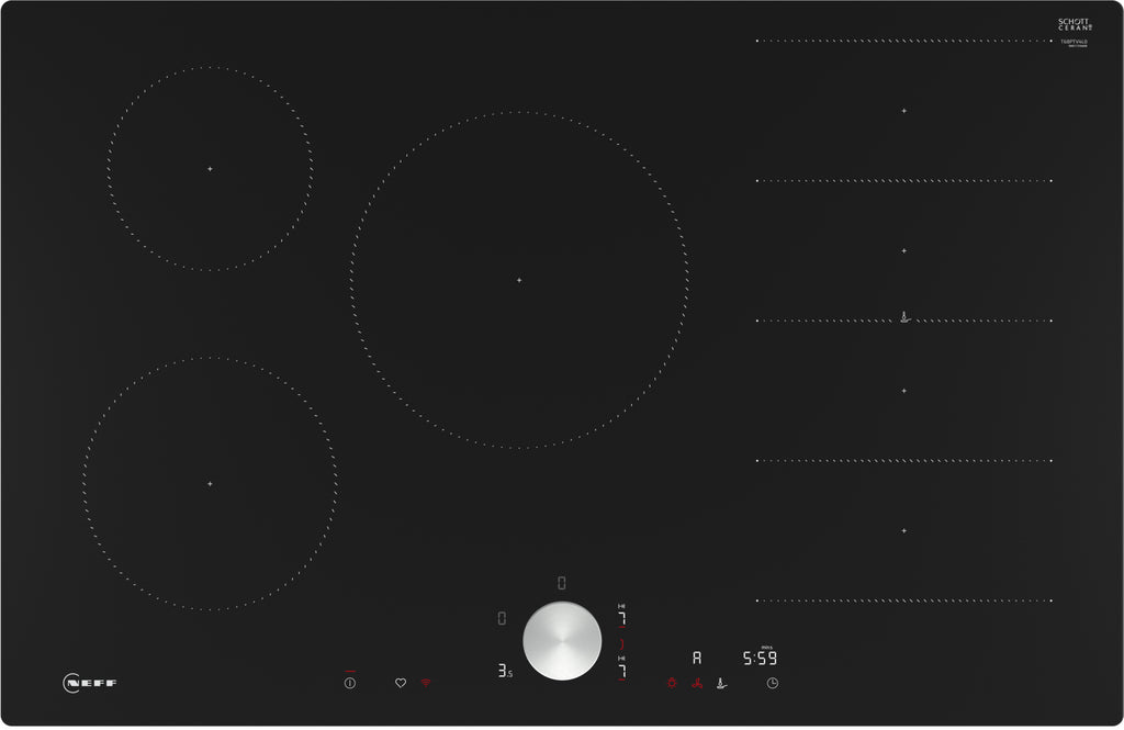 Neff T68PTV4L0. Produktfarve: Sort, Placering af apparat: Indbygget, Ovnbredde størrelse: 80 cm. Kontroltype: Berøring, Kontrolposition: Front, Timer type: Digital. Tilsluttet belastning (elektrisk): 7400 W, Vekselstrømsindgangsspænding: 220 - 240 V, Vekselstrømsindgangsfrekvens: 50/60 Hz. Bredde: 792 mm, Dybde: 512 mm, Højde: 56 mm. Pakkebredde: 953 mm, Pakkedybde: 608 mm, Pakkehøjde: 126 mm