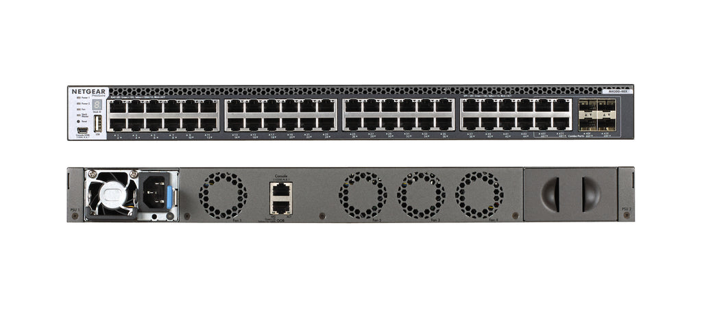 NETGEAR M4300-48X/US/EME. Switch-type: Administreret. Basis omskiftning RJ-45 Ethernet porttype: 10G Ethernet (100/1000/10000), Basis omskiftning RJ-45 Ethernet porte, antal: 48, Antal USB 2.0-porte: 1, Port til konsol: RJ-45. Switch kapacitet: 480 Gbit/sek.. Stativ-montering, Formfaktor: 1U