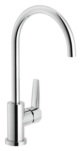 Mood køkkenarmatur i høj model med C-tud kan drejes 360° og er udstyret med luftblander med antikalk funktion. Armaturet har en indbygget flowregulator, der reducerer strømningshastigheden med 50%, hvilket giver et reduceret vandforbrug. Leveres med 3/8 fleksible slanger.