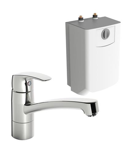 Køkkenarmatur med vandvarmer. Svingradius er 120° som standard (kan begrænses til 40°-80°). Max. Flow: 5 l/min. Grundet opvarmningen af vandet, er det naturligt, at der kan dryppe vand fra luftblanderen. Luftblanderen må ikke udskiftes til en anden, der må ligeledes heller ikke tilsluttes andet udstyr til armaturet. 5 liters trykløs vandvarmer til stikprop. Nem installation. Virkeområde +35° – 85°C (anbefaling + 65°C). For at forebygge frostskader, skal armaturet og vandvarmeren tømmes for vand før vinter. Vandvarmeren må kun installeres sammen med det originale, tilhørende Oras armatur. Advarsel! Vandvarmeren kan varme vandet op til +85°C. Brugerne bør gøres opmærksomme på, at vandet fra armaturet er varmt fra start, når dette åbnes. Armaturet og vandvarmeren må ikke installeres særskilt. 230 V via stikprop. F = fleksible tilslutningsslanger. Forkromet.