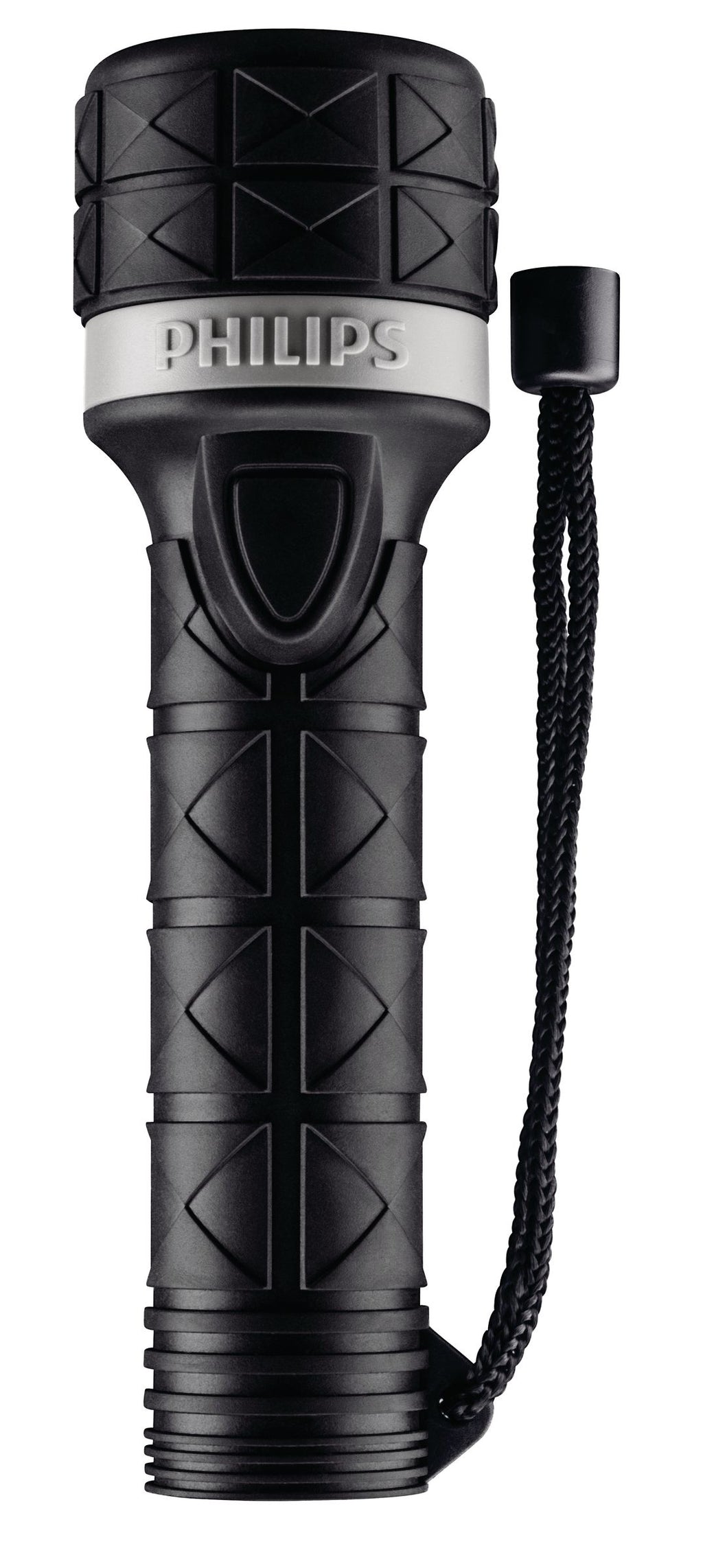 Philips Flashlights Lommelygte SFL5200/10. Lommelygte type: Hånd lommelygte, Produktfarve: Sort, Husmateriale: Gummi. Lampe type: LED, Pæreeffekt: 0,3 W, Lampens levetid: 100000 t. Batteritype: AA, Batteriteknologi: Alkaline, Batterilevetid (maks.): 46 t. Bredde: 455 mm, Dybde: 30 mm, Højde: 154 mm. Pakkebredde: 10,6 mm, Pakkedybde: 4,55 mm, Pakkehøjde: 20,5 mm