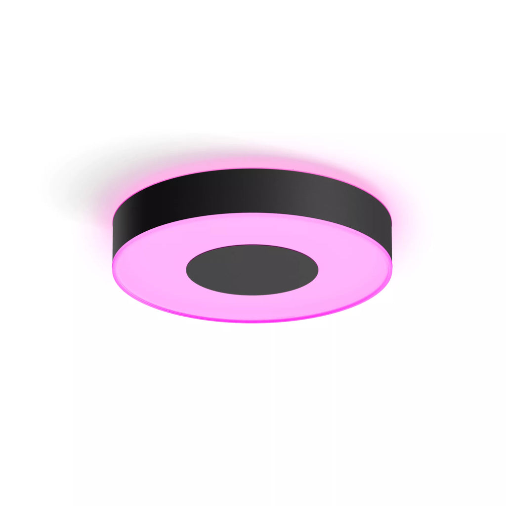 Philips Hue White and Color ambiance Xamento mellemstor loftslampe til badeværelset. Type: Intelligent loftslys, Grænseflade: Bluetooth, Produktfarve: Sort. Indgangsspænding: 50–60 Hz, Pærespænding: LED, Vekselstrømsindgangsfrekvens: 50 - 60 Hz. Bredde: 381 mm, Dybde: 381 mm, Højde: 84 mm. Pakkebredde: 437 mm, Pakkedybde: 457 mm, Pakkehøjde: 100 mm. Antal pr. pakke: 1 stk