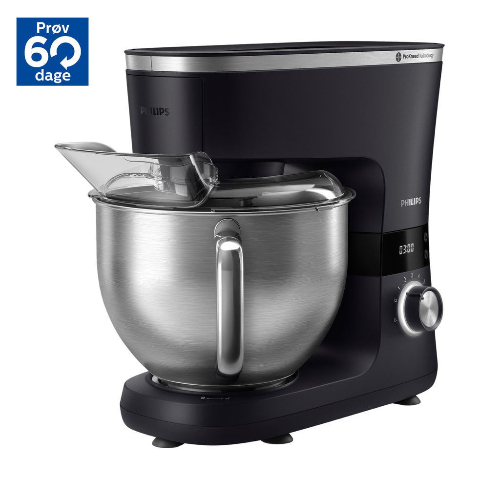 Philips Series 7000 Køkkenmaskine. Type: Bordmixer, Produktfarve: Sort, Mixer funktioner: Slå, Ælte, Mikse. Husmateriale: Metal, Plast, Materiale, kniv: Metal, Skål, materiale: Rustfrit stål. Strøm: 1000 W, Vekselstrømsindgangsspænding: 230 V. Bredde: 360 mm, Dybde: 176 mm, Højde: 345 mm. Pakkebredde: 442 mm, Pakkedybde: 407 mm, Pakkehøjde: 319 mm