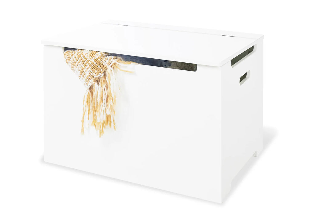 Opbevaringskassen har et stort magasin med plads til både skriveredskaber og legetøj.