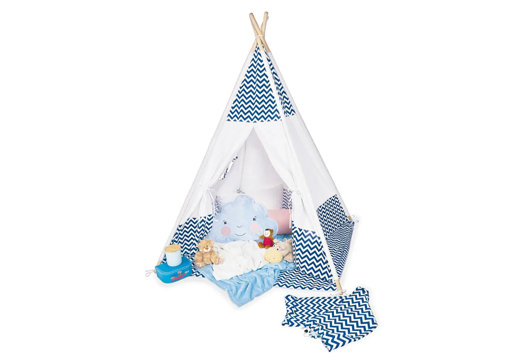Tipien har massive træ-pinde og er både let at slå op og pakke sammen igen.