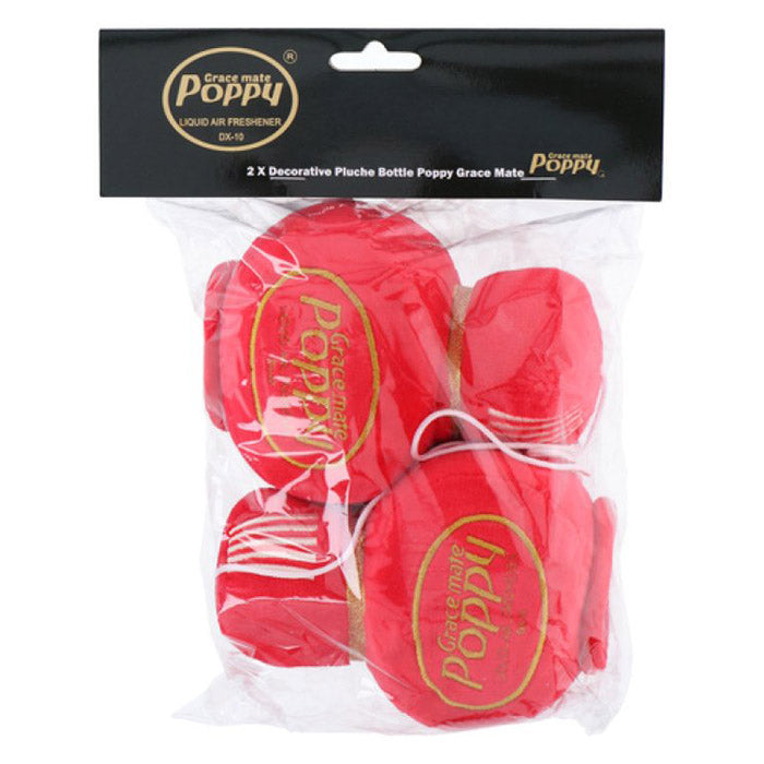Hver pakke indeholder 2 plys-flasker med snor, ideelle til ophæng i bakspejlet eller kabinen. Gør din kørsel mere personlig med Poppy Plush.