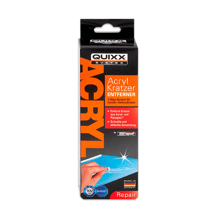 Med QUIXX Acryllic Scratch Remover kan du nemt og hurtigt fjerne dybe og brede ridser fra akryl- og Plexiglas®-overflader. Uanset om det er på din bil, motorcykel, campingvogn, båd eller møbler, så er dette produkt din løsning til at undgå dyre reparationer og udskiftninger.