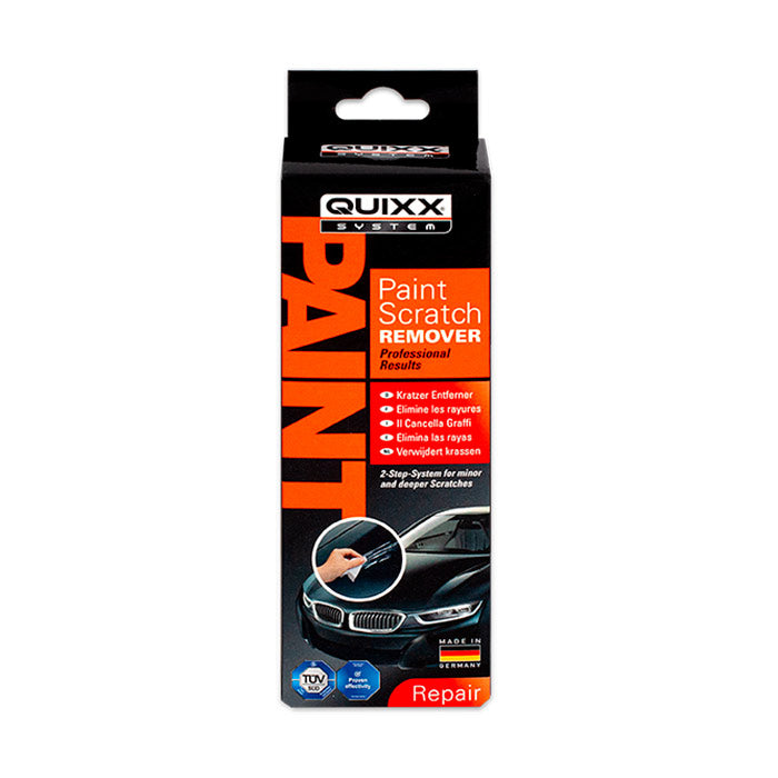 QUIXX Paint Scratch Remover er en effektiv løsning til at fjerne ridser, skrammer og maling fra alle blanke malinger, inklusive metallic. Denne ridsefjerner er designet til at håndtere små, mellemstore og dybe ridser med lethed.