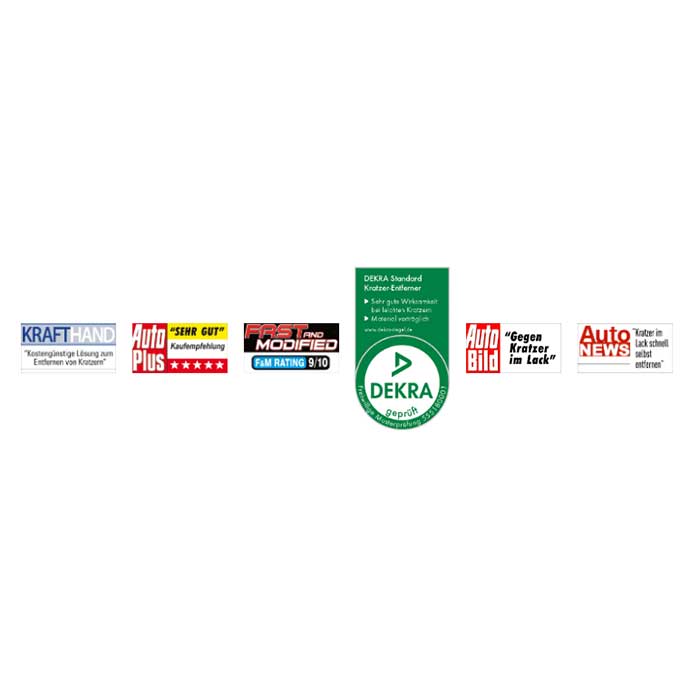 QUIXX Paint Scratch Remover er den første ridsefjerner, der har opnået TÜV-testens blåstempling for dokumenteret effektivitet. Den har også bestået DEKRAs strenge testprogram med en bedømmelse på 'meget god' og har vundet flere internationale testpriser.