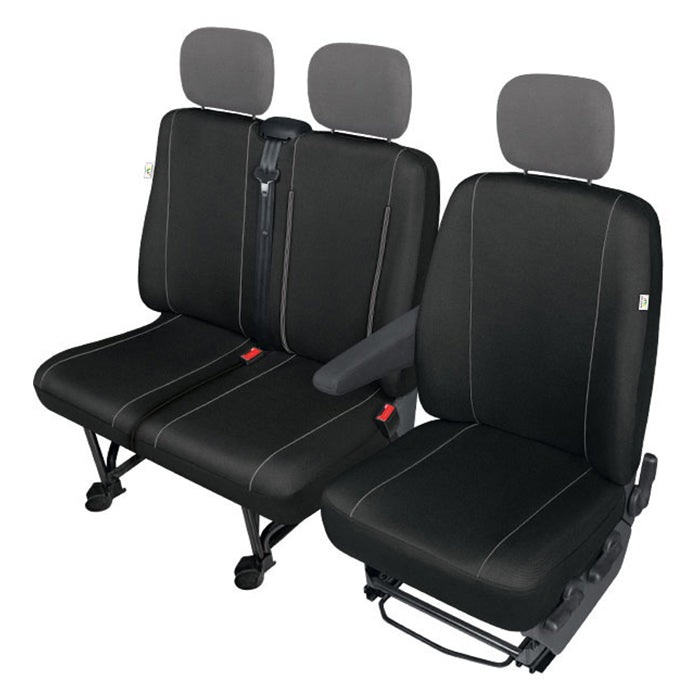 Dette sæt indeholder: 1 forsædebetræk, 1 dobbelt sofabetræk og monteringsklips. Ideelt til Iveco Daily, 2014-.