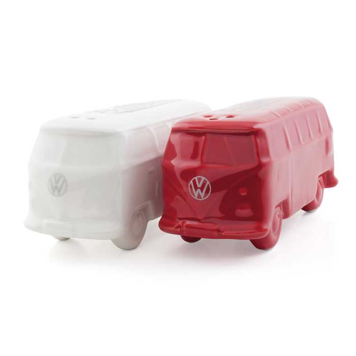 Salt- og pebersæt i rød og hvid VW T1 bus. Specifikationer: Design: VW T1 bus. Farve: Rød/hvid Mål (cm): 10,2x4,7x4