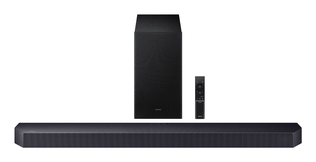 - Samsungs-teknologier (AV/TV): One Remote Control, Q-Symphony, SpaceFit Sound Pro, Tap Sound