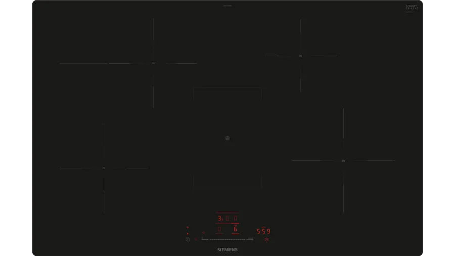 Siemens iQ300 EH801HFB1E. Produktfarve: Sort, Placering af apparat: Indbygget, Ovnbredde størrelse: 80 cm. Kontroltype: Berøring, Kontrolposition: Top forside, Urtype: Elektronisk. Tilsluttet belastning (elektrisk): 7400 W, Vekselstrømsindgangsspænding: 220 - 240 V, Vekselstrømsindgangsfrekvens: 50/60 Hz. Bredde: 792 mm, Dybde: 512 mm, Højde: 56 mm. Pakkebredde: 950 mm, Pakkedybde: 600 mm, Pakkehøjde: 130 mm