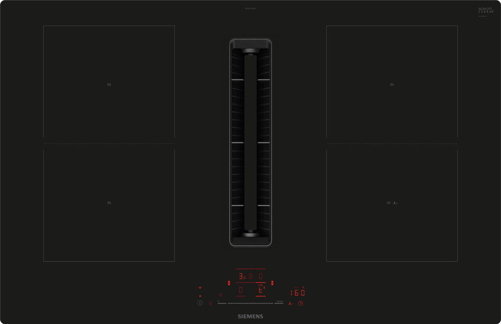 Siemens iQ500 ED811HQ26E. Produktfarve: Sort, Placering af apparat: Indbygget, Ovnbredde størrelse: 80 cm. Kontroltype: Berøring, Kontrolposition: Front / Top front, Timer type: Digital. Maksimal ekstraktionseffekt: 500 m³/t, Støjniveau: 69 dB, Energieffektivitetsklasse (udsugning): B. Tilsluttet belastning (elektrisk): 7400 W, Vekselstrømsindgangsspænding: 220 - 240 V, Vekselstrømsindgangsfrekvens: 50/60 Hz. Siemens-teknologier (madlavning): powerBoost