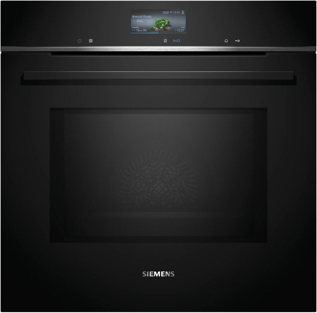 Siemens iQ700 HM776GKB1. Ovn - størrelse: Medium, Ovntype: Elektrisk ovn, Samlet indvendig ovn kapacitet: 67 L. Placering af apparat: Indbygget, Produktfarve: Sort, Kontroltype: Berøring. Urtype: Elektronisk, Timer type: Digital. Tilsluttet belastning: 3600 W, Vekselstrømsindgangsspænding: 220-240 V, Vekselstrømsindgangsfrekvens: 50-60 Hz. Bredde: 594 mm, Dybde: 548 mm, Højde: 595 mm