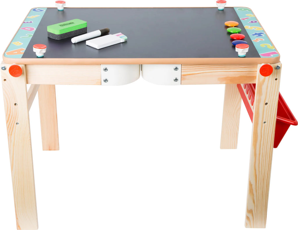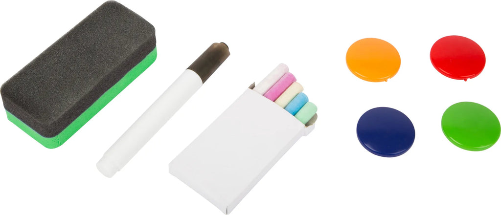 Skriveredskaber, magneter og svamp kan opbevares i den medfølgende store opbevaringskasse.