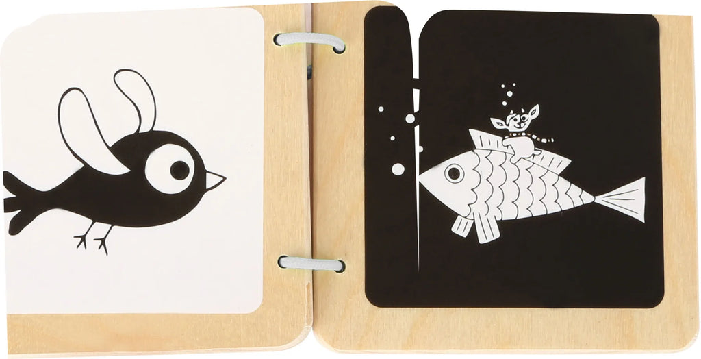 En bog der understøtter det lille barns første sensoriske oplevelser og fornemmelse for kontraster, sort/hvid og meget mere.
