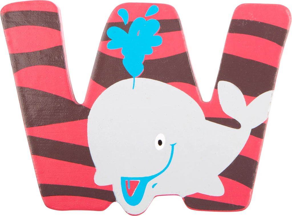 Bogstav W i træ med dyremotiv 7x8 cm – pædagogisk dekorationsbogstav, small foot