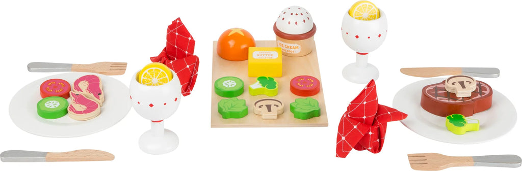 Alt service er lavet af robust træ og kan sammensættes individuelt. Bøf er sammensat med velcro og kan deles, og is fastgjort med en magnet.