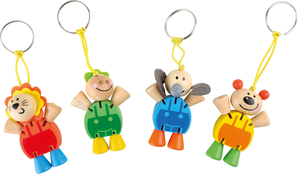 Nøgleringefigurerne har elastikbånd og kan bevæge deres hænder og fødder.