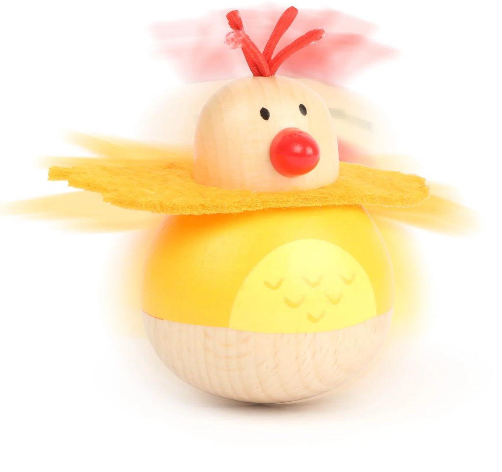 Både uglen, mariehønen, pingvinen eller kyllingen rejser de sig op, hver gang, de bliver forsøgt væltet.