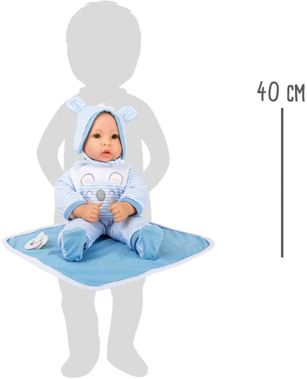 Lukas har krop i tekstil, der gør ham blød og dejlig, samt hoved, ben og arme fremstillet i vinyl.