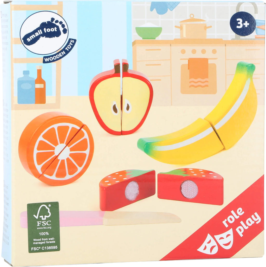 Frugt med velcro til eftermiddagsfrugt i legekøkkenet. Kan deles med den medfølgende kniv.